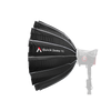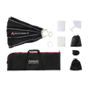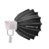 The Quick Dome 90 is a 90cm (3ft) circular Bowens mount softbox built for fast, reliable light shaping on set. Its quick release latch mechanism allows users to tension the steel support rods on the speed ring within seconds, streamlining both setup and teardown. The extended lateral side handle makes mounting and unmounting easy and controllable, and Quick Dome 90 packs flat for storage and transport. Includes 1 and 2-stop diffusion, internal baffle, and 40° light control grid.